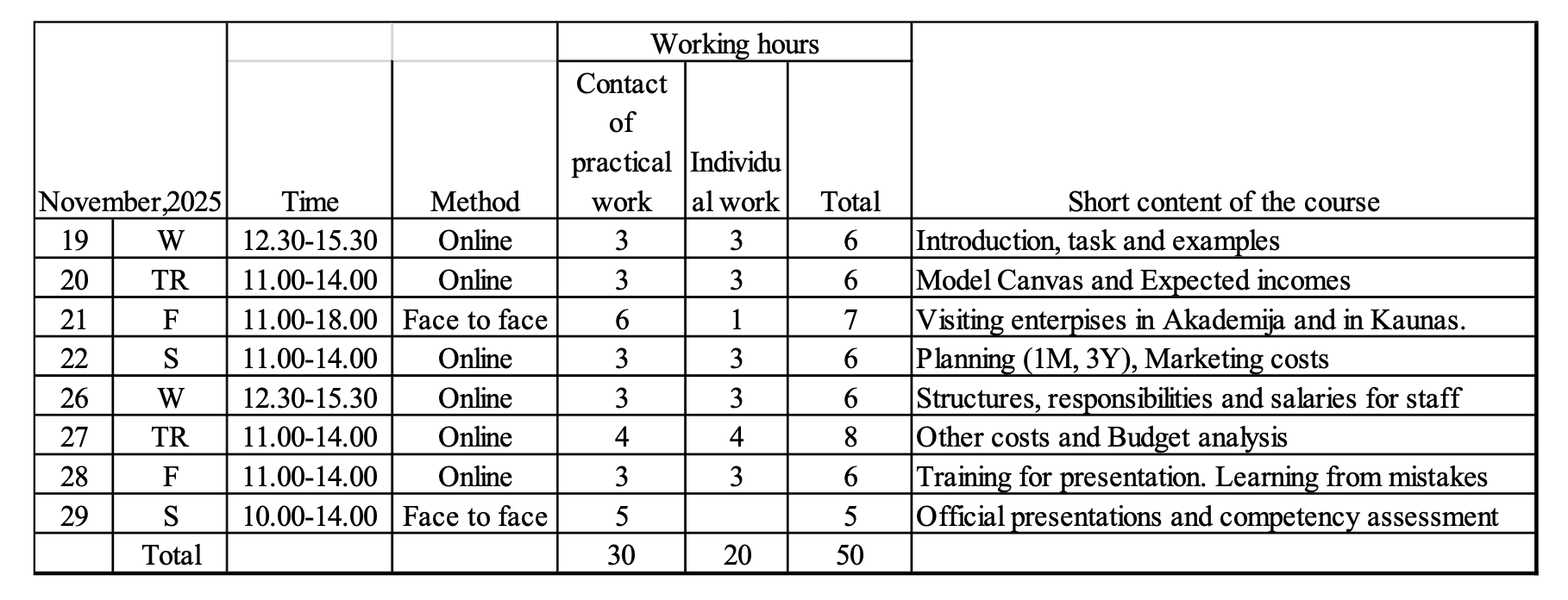 Course venue ( for “face to face” meeting): Vytautas Magnus University (in Agriculture Academy, Universiteto g. 10, Akademija, 53367 Kauno r. sav.